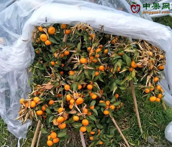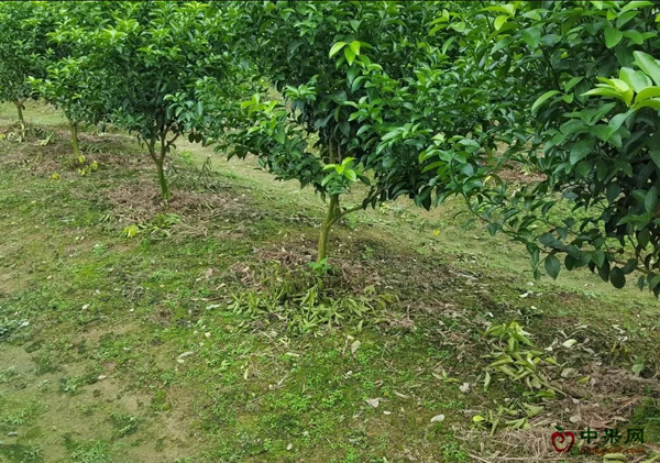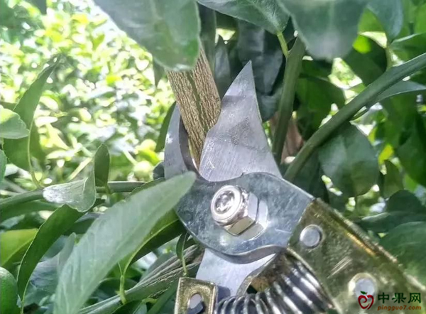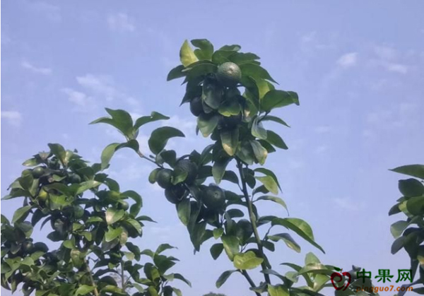 3、柑橘树冠顶部直立枝条,放秋梢时有少量的果舍不得剪,采摘后冬季可剪掉。