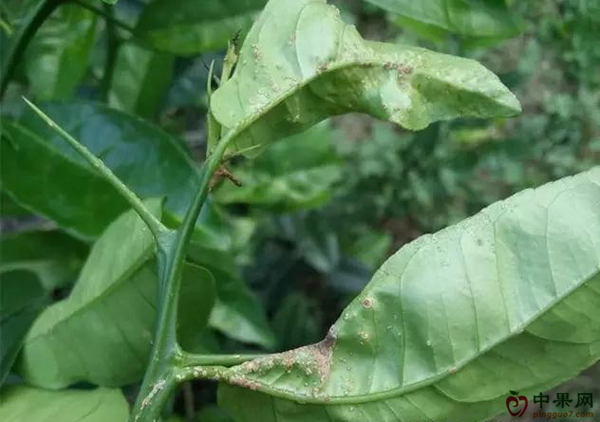 疮痂病主要为害柑橘嫩叶、嫩梢、幼果等幼嫩组织和器官。