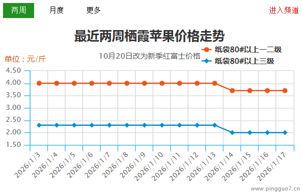 官方报价:品名规格价格(元/斤)备注库存晚富士80#3.50-4.50一二级库存晚富士80#以上2.00-2.60客商三级库存晚富士80#以上2.50左…[