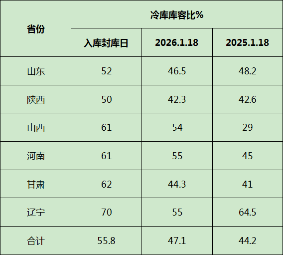 2025/2026苹果主要库存区样本冷库库容消耗进度统计(2026.1.18)翻译搜索复制…[