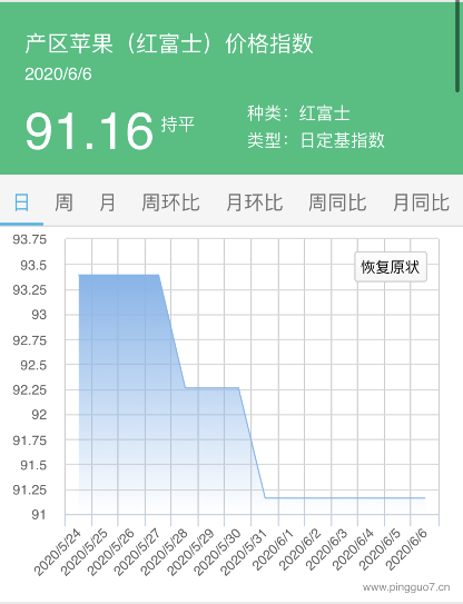 本日产区苹果指数:91.16,较昨日持平。
