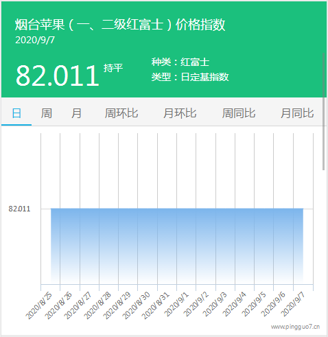 本日烟台苹果指数:82.011,较昨日持平。