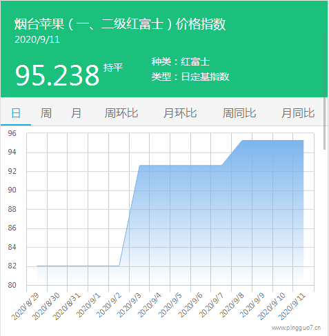 本日烟台苹果指数:95.238,较昨日持平。