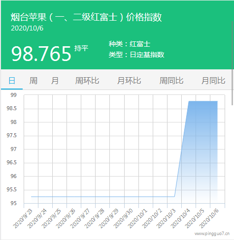 本日烟台苹果指数:98.765,较昨日持平。
