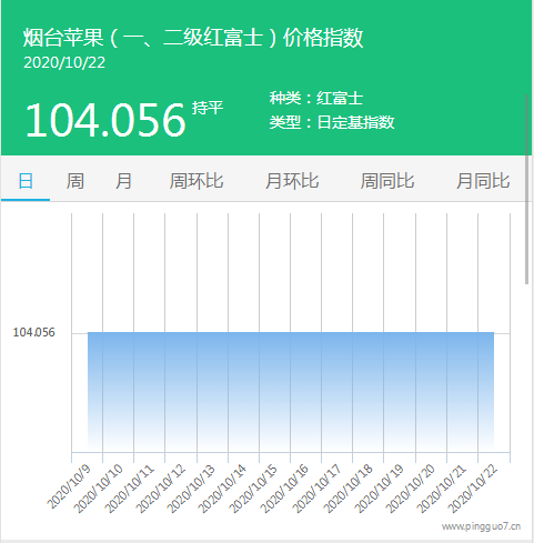 本日烟台苹果指数:104.056,较昨日持平。