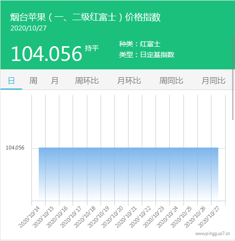 本日烟台苹果指数:104.056,较昨日持平。