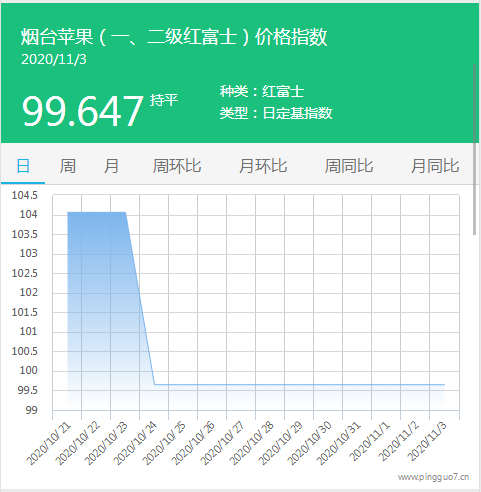 本日烟台苹果指数:99.647,较昨日持平。