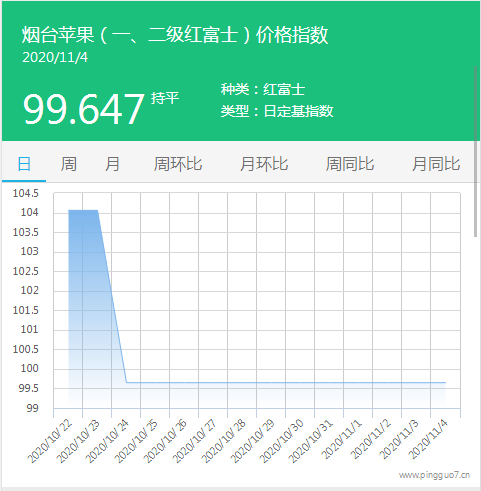 本日烟台苹果指数:99.647,较昨日持平。