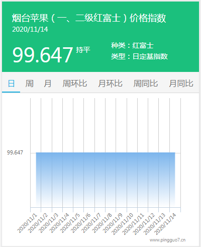 本日烟台苹果指数:99.647,较昨日持平。