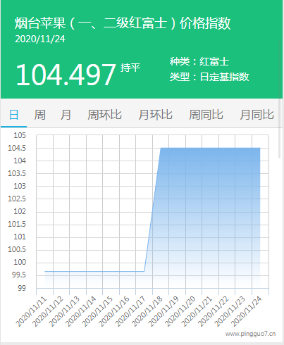 本日烟台苹果指数:104.497,较昨日持平。