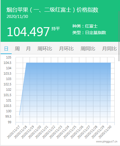 本日烟台苹果指数:104.497,较昨日持平。