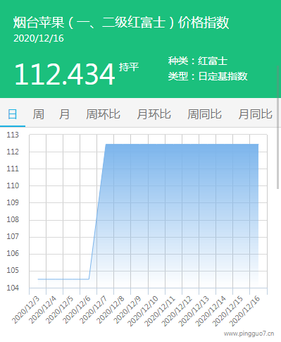 本日烟台苹果指数:112.434,较昨日持平。