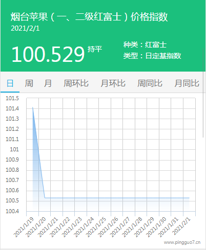 本日烟台苹果指数:100.529,较昨日持平。