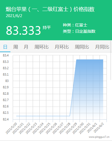 本日烟台苹果指数:83.333,较昨日持平。