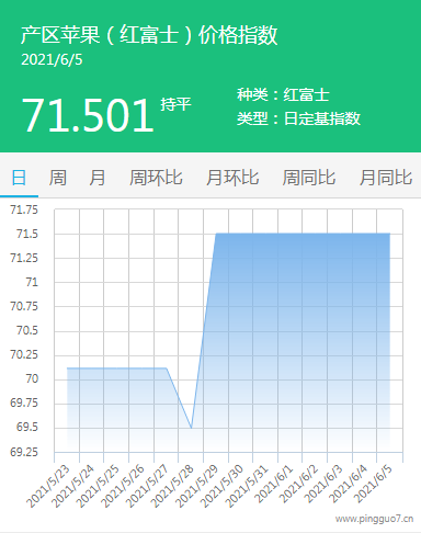 本日产区苹果指数:71.501,较昨日持平。