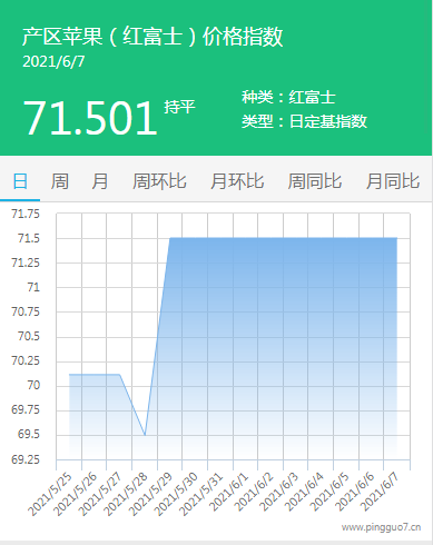 本日产区苹果指数:71.501,较昨日持平。