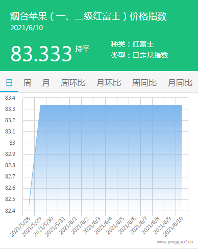 本日烟台苹果指数:83.333,较昨日持平。