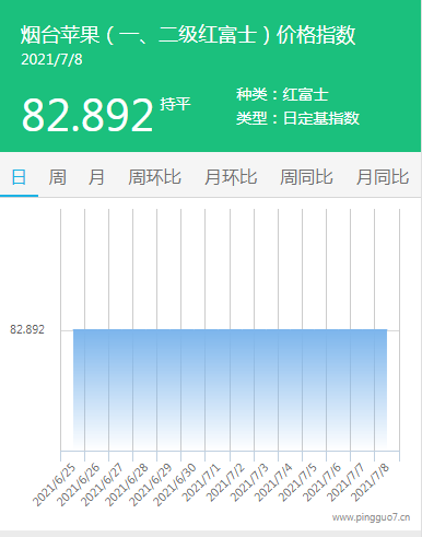 本日烟台苹果指数:82.892,较昨日持平。