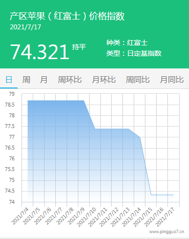 本日产区苹果指数:74.321,较昨日持平。