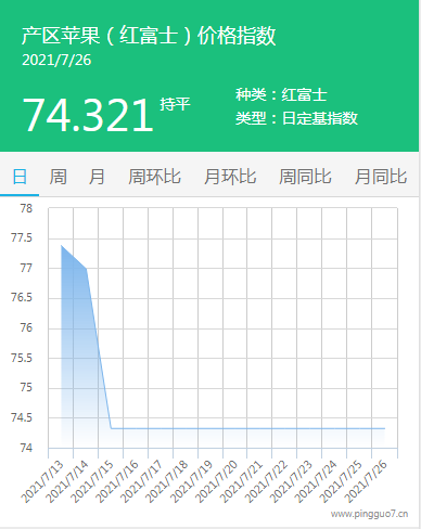 本日产区苹果指数:74.321,较昨日持平。