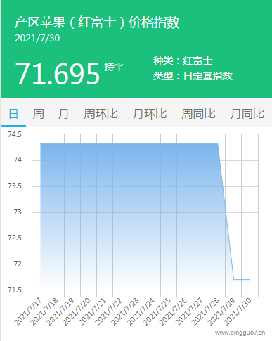 本日产区苹果指数:71.695,较昨日持平。