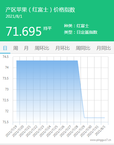 本日产区苹果指数:71.695,较昨日持平。