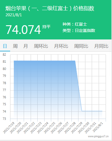 8月1日烟台(一、二级红富士)苹果价格指数