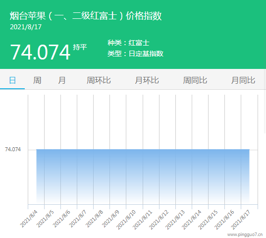 本日烟台苹果指数:74.074,较昨日持平。