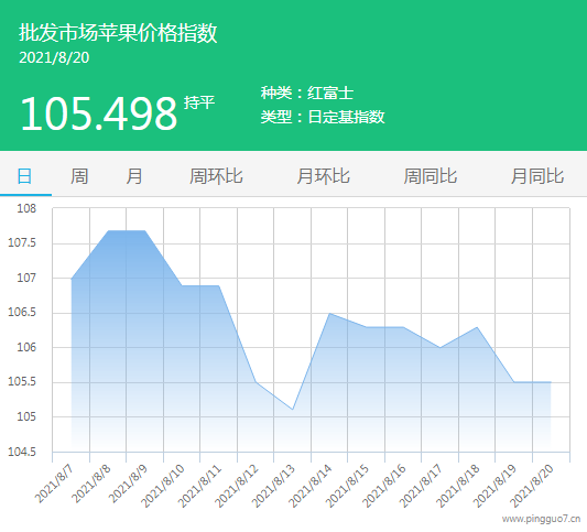 本日批发市场苹果指数105.498,较昨日无涨跌。