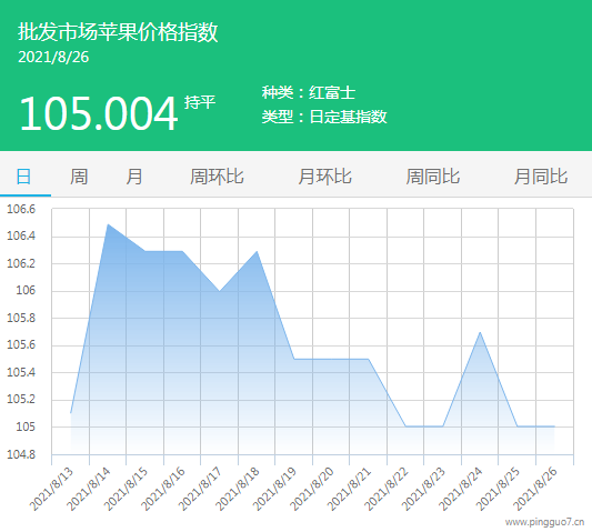 今日批发市场苹果指数105.004,较昨日无涨跌。