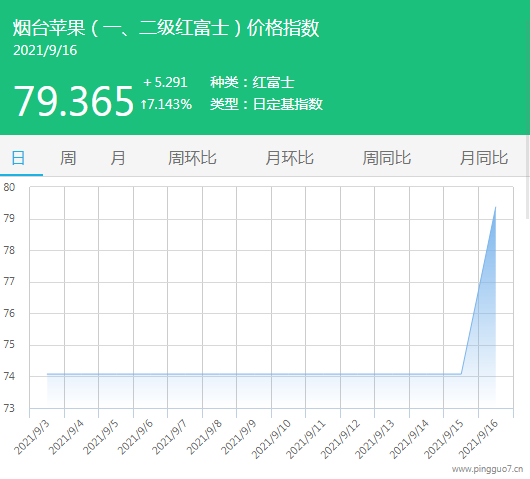 9月16日烟台(一、二级红富士)苹果价格指数