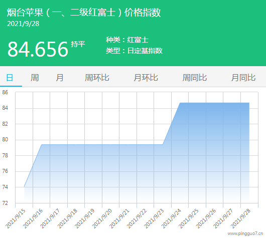 今日烟台苹果指数:84.656,较昨日持平。