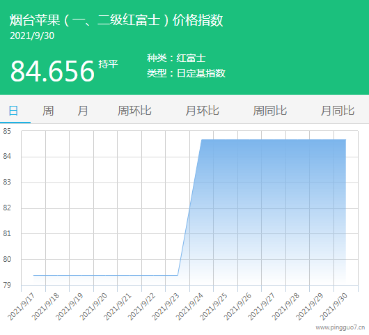 今日烟台苹果指数:84.656,较昨日持平。