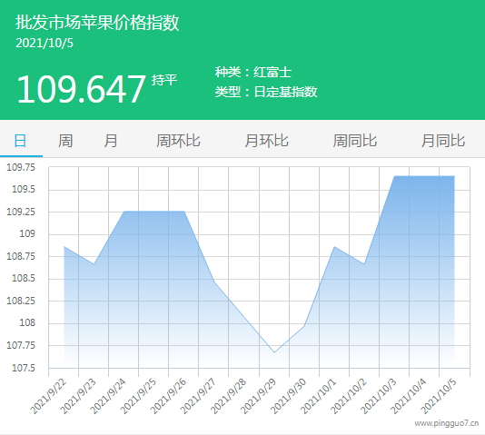 今日批发市场苹果指数109.647,较昨日无涨跌。