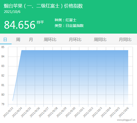 今日烟台苹果指数:84.656,较昨日持平。