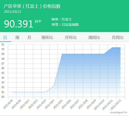 今日产区苹果指数:90.391,较昨日持平。