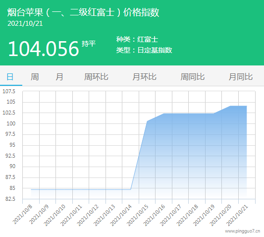 今日烟台苹果指数:104.056,较昨日持平。
