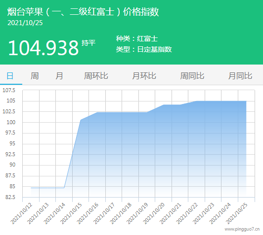 今日烟台苹果指数:104.938,较昨日持平。