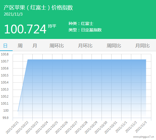 今日产区苹果指数:100.724,较昨日持平。