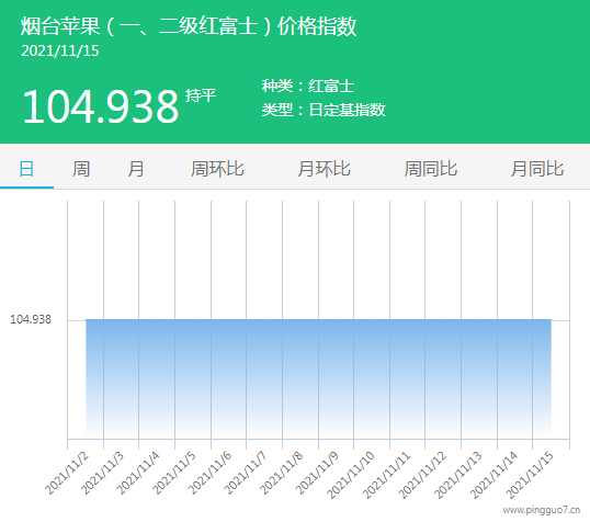 今日烟台苹果指数:104.938,较昨日持平。