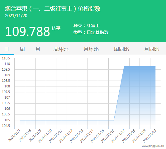 今日烟台苹果指数:109.788,较昨日持平。