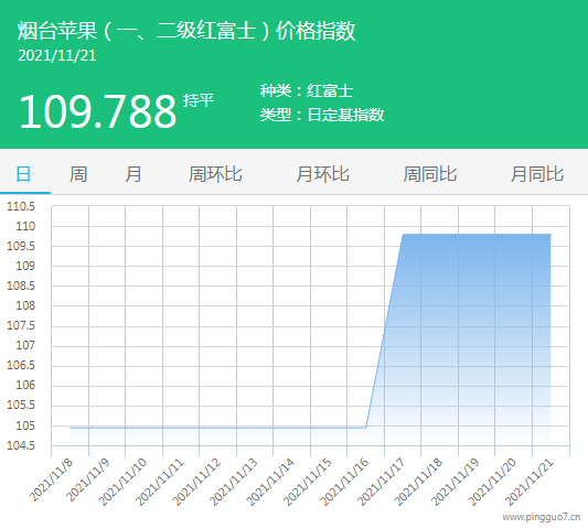 今日烟台苹果指数:109.788,较昨日持平。