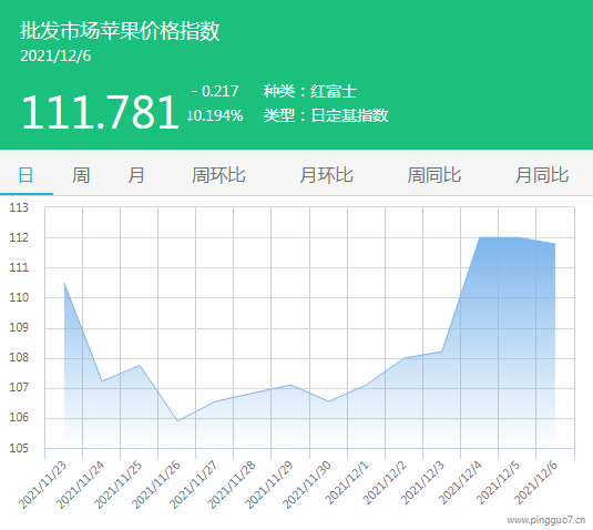 今日批发市场苹果指数111.781,较昨日下跌0.217,跌幅0.194%。