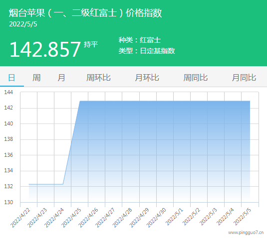 今日烟台苹果指数:142.857,较昨日持平。